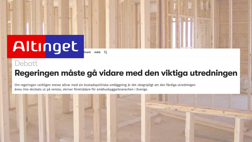 ”Sverige befinner sig i en lågkonjunktur med hög inflation och osäker framtid. Inom träindustrin har nästan var femte person förlorat sitt jobb de senaste åren. Småhusföretagen ser en direkt koppling mellan regeringens inaktivitet och ökade konkurser samt arbetslöshet”.