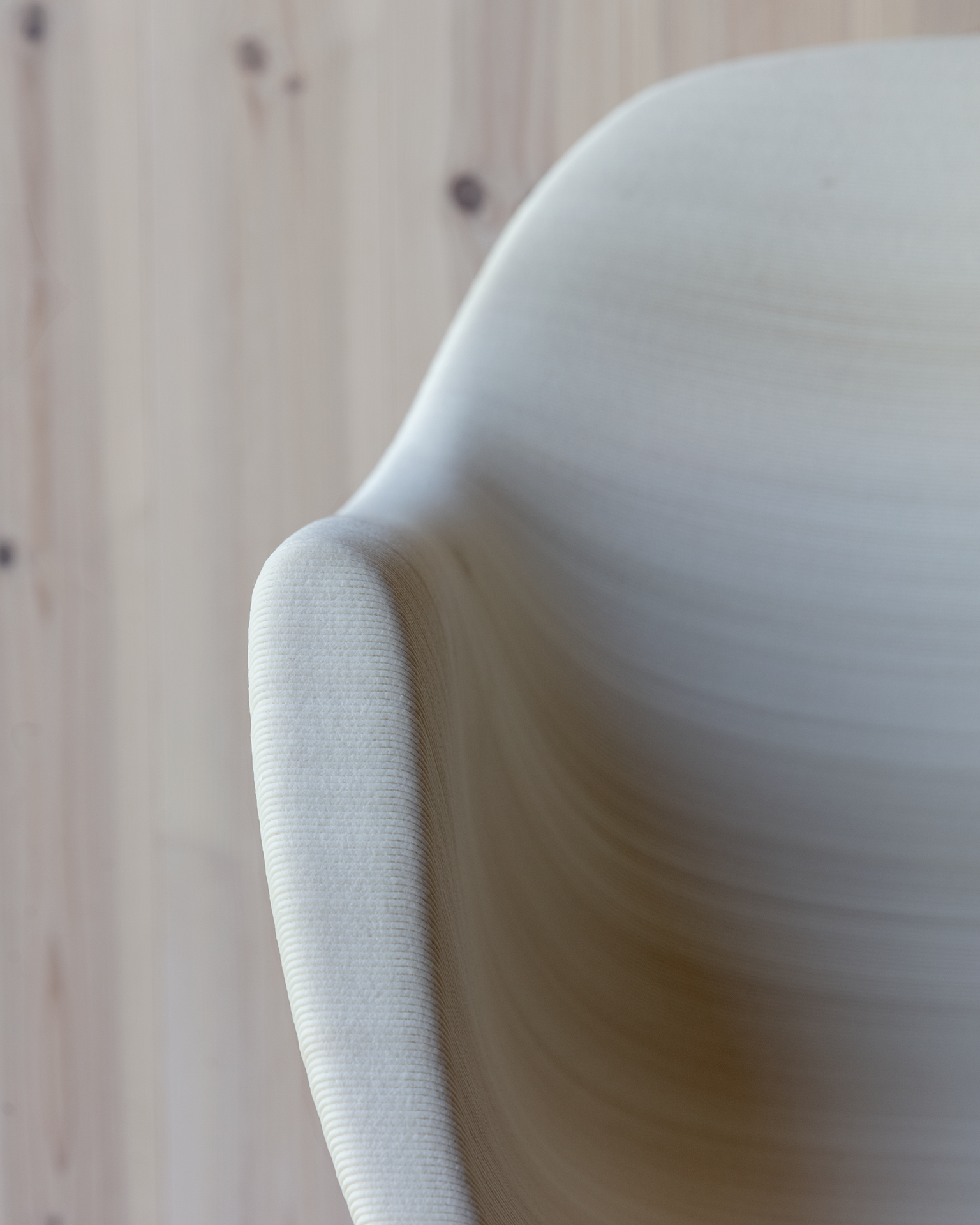Johanna Vesterberg säger att storskalig 3D-printning just nu är en av de få metoder som kan göra möbelbranschen verkligt cirkulär. Anledningarna hon räknar upp är flera; nästan vilket material som helst kan användas, det blir nästan inget spill – det som blir kan man slänga in igen och skriva ut på nytt – och med ”print on demand” behövs inga lager och det blir inga överskott av möbler som behöver reas ut i slutet av året. Dessutom kan materialet gå i arv, med eget formspråk.